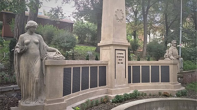 Pomník sestává z kašny, obelisku, dvou zděných a omítnutých křídel s tabulkami se jmény padlých a ze dvou pískovcových plastik – postavy sanitáře – infanteristy c. a k. pěšího pluku v polní uniformě s rukávovou páskou s křížem dle ženevské konvence a truchlící ženské alegorické postavy.