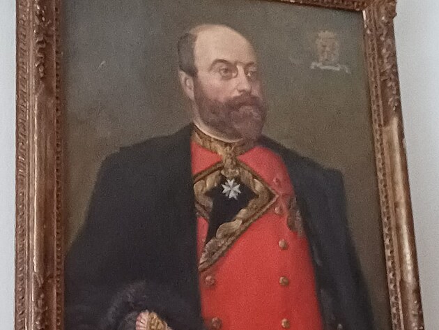 Interiér Velkipřevorského paláce v Praze a čestný rytíř hrabě Desfours – Walderode v řádové uniformě (fotografie pan Jiří Strašek – se souhlasem)