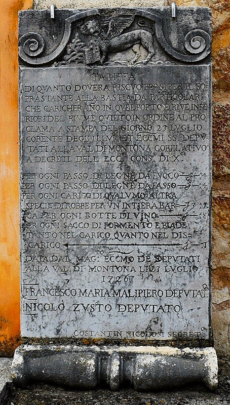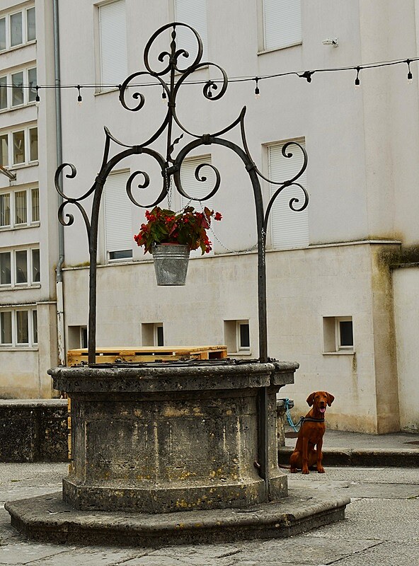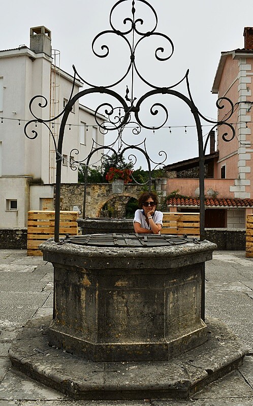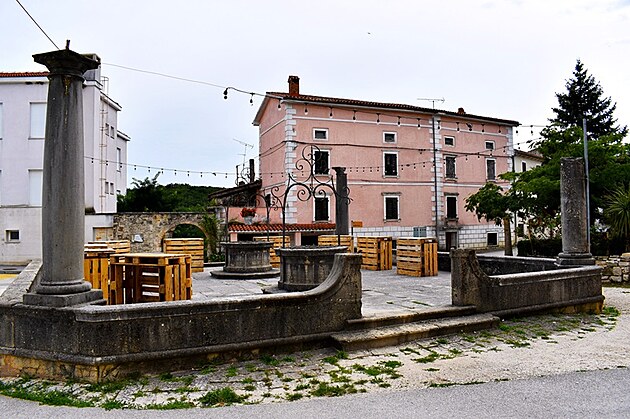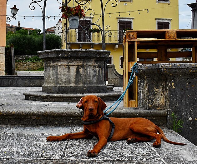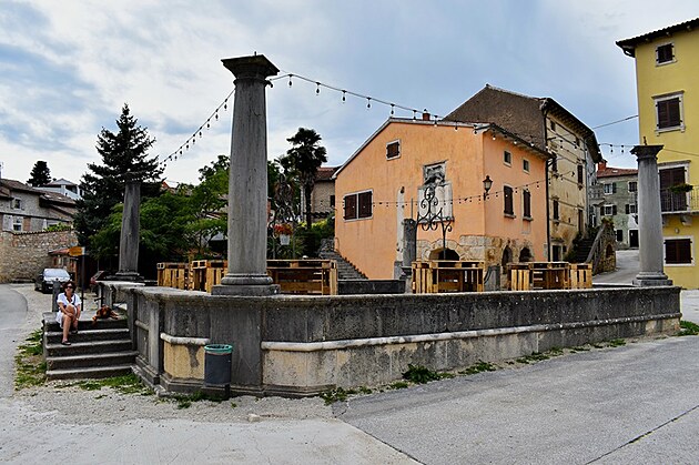 Chvíľu sme si posedeli na tomto romantickom mieste z ktorého bol príjemný výhľad na celé námestie. Aj náš Áres II. pocítil potrebu ochladenia na kameni cisterny. Prezerali sme si odtiaľ starý Fontik, alebo Leví dom z 15. storočia. Fontik je stredoveký názov pre budovu, alebo komplex budov, ktoré slúžili na skladovanie tovaru a ubytovanie obchodníkov. Na fasáde ho zdobí reliéf leva sv. Marka a pod nim kamenný „Tarifarnik“ z roku 1726, na ktorom sú vyryté poplatky za obchod a plavbu po rieke Mirna.
