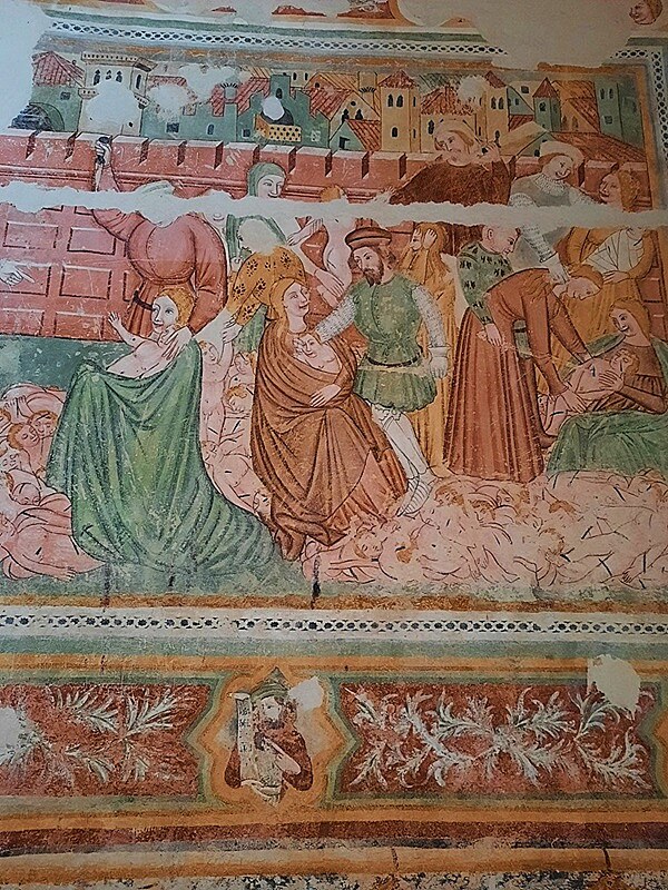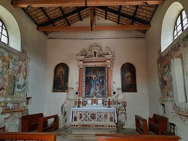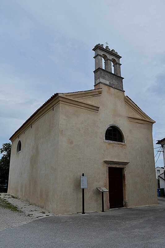 Z dvora sme vyšli malou železnou bránou na ulicu. Asi po päťdesiatich metroch sme sa dostali k jednoloďovému kostolu sv. Barnabáša, ktorý bol postavený v 12. a barokizovaný v 17. storočí. Paradoxne, počas natáčania amerického filmu tu boli náhodne objavené jedny z najzaujímavejších fresiek na Istrii, následne reštaurované, ktoré namaľovali v 14. storočí majstri juhotirolskej dielne. Fresky nesú kristologický cyklus, ktorý sa začína Narodením a cez adoráciu Kalvárie, Zabíjanie nevinných detí, Krista korunujúceho Pannu a končí Siedmimi smrteľnými hriechmi.