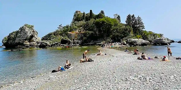 V dávnej histórii Taorminy miestni ľudia verili, že aby pútnici prichádzajúci do mesta nepriniesli so sebou nešťastie, mali by zo seba zmyť nánosy ciest a nedobra v zátoke okolo malého, romantického ostrovčeka Isola Bella. Takto očistení mohli vstúpiť do čarolie pôvodne gréckeho mesta, ktorého základy sú datované do roku 358 pred Kristom, keď Andromachus, otec Timaia, slávneho historika, zhromaždil tých, ktorí odišli z ostrova Naxos pred Peržanmi a priviedol ich na horu Tauro, odtiaľ názov Taormina, Tauromènion. Taormina je jedným z najkrajších pokladov celej Sicílie. Potulkami mestom sme nadobudli pocit cestovania v čase.