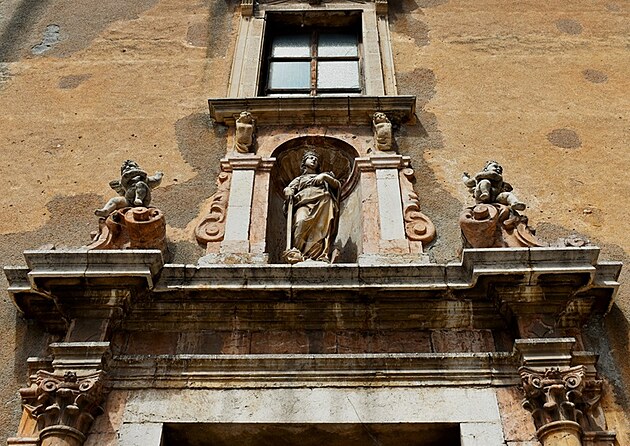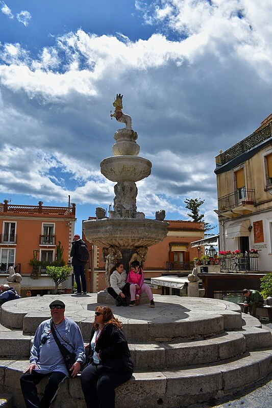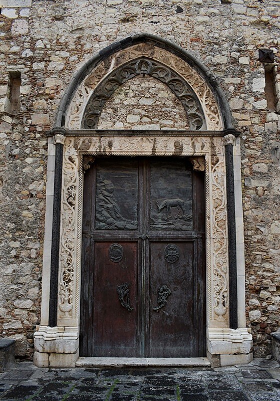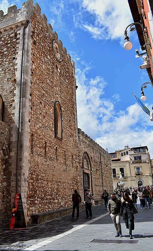 Bránou z 12. storočia s orlojom sme akoby vyšli z jedného sveta a vnorili sa do sveta v druhom programe sna. Starou uličkou, ktorá sa nám odrazu otvorila do ďalšej prekrásnosti, Piazza del Duomo, ktorému dominuje baroková fontána so sochou dvojnohej ženy kentaura neustále obsadenou miestnou mládežou, turistami a teraz na chvíľu aj nami. Samozrejme nás vtiahlo šero pôvodne románskeho chrámu Duomo, ktorý tu postavili Normani v 12. storočí. Tak ako mnoho iných v stredoveku aj tento chrám plnil funkciu súčasti opevnenia mesta.
