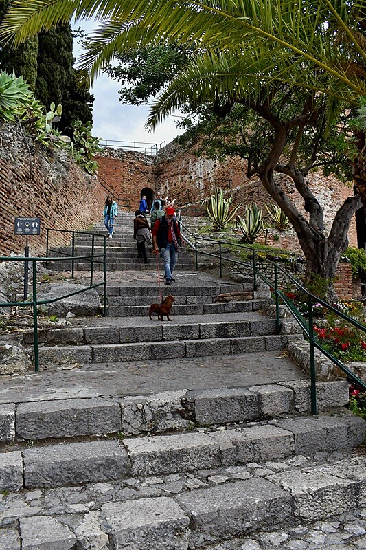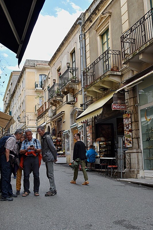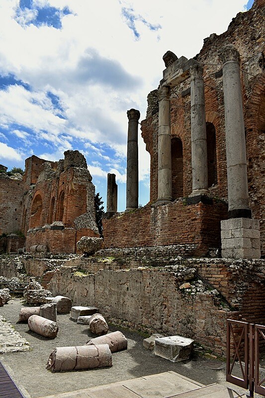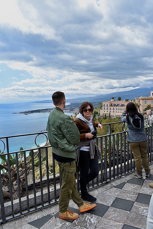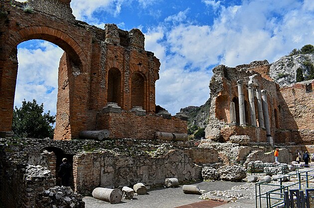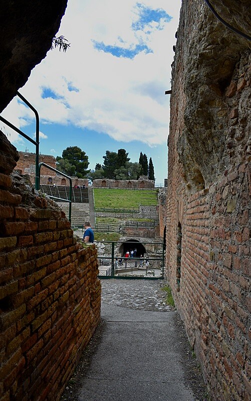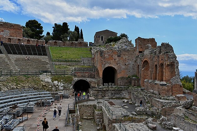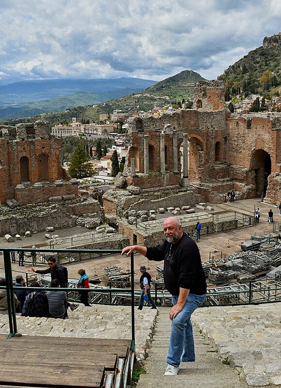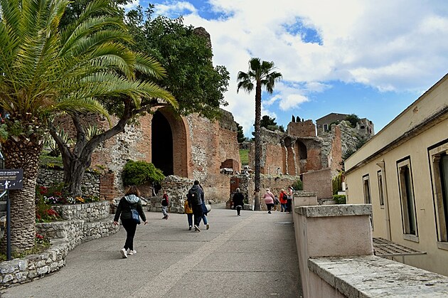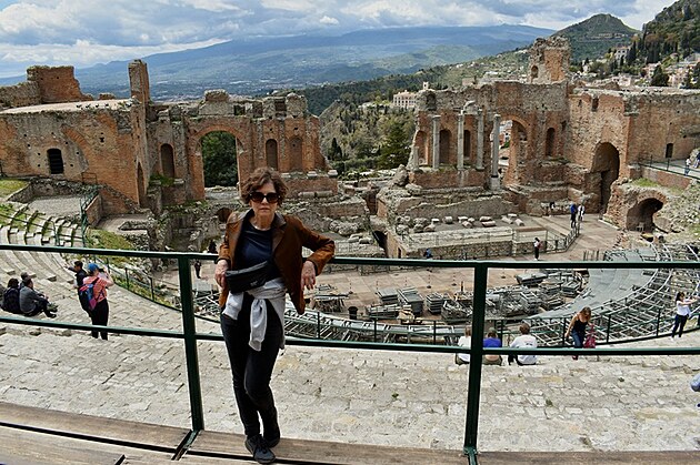 Tu sme už neodolali skvostnej dobrote arancini, na ktorú nás navnadil už dávno inšpektor Rocca a samozrejme opäť najvoňavejšiu kávu. Len potom sme nasmerovali kroky k lákadlu všetkých prichodiacich. Teatro Antico di Taormina, alebo Teatro Greco. Vystupovali sme uličkami do kopca, aby sme bránou vošli do 3. storočia p.n.l. do časov Hyera II. zo Syrakúz. Sadli sme si na kamenné lavice a pred nami, na scéne sa odohrávajú dramatá diel Aischyla, Sofokla, Euripida i Aristofana. A v pozadí najúchvatnejšia scéna pretrvávajúca tisícročia, záliv Schisò a dymiaca sopka Etna. Epochálne. To nie je len úžasná diaľava pre snenie, nie je to len velebnosť vzdialených horizontov skrytých predstáv, nie je to len hrdokrásna vznešenosť kolosálnych šírok tichosti hladiny a impozantnosť spirituality chóru oblohy. Je to úchvatný priestor farebnosti, koloristických erupcií i jemných valérov. A toľko miest na pre pozorovanie tejto skvostnej galérie sveta pre každého....