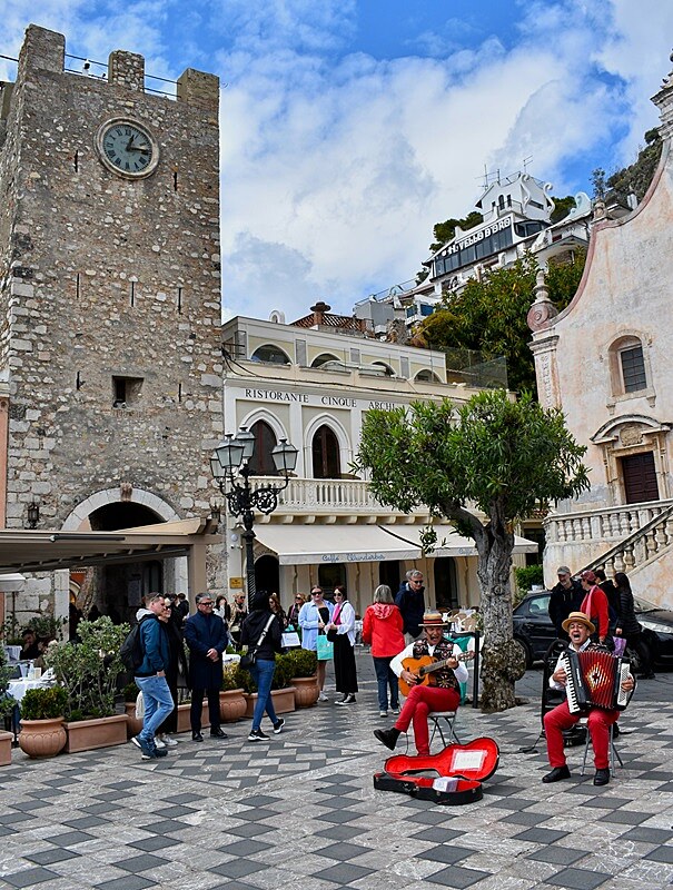 Za chrbtom, stačilo sa len otočiť, Teatro del Mondo, Divadlo sveta vytvorené dávno predtým, ako o ňom začal snívať Aldo Rossi. Pompézny výhľad, scéna vystupujúceho kužeľa Etny, akoby z hladiny mora s malým oparom nad zahaleným kráterom. A celé to veľkolepé predstavenie dopĺňa na námestí vystúpenie pouličných umelcov, ktorí svojimi šlágrami talianskej ľahkej múzy dopĺňajú atmosféru romantickej kolorovanej pohľadnice, ktorú poniektorí ukývame v kredenci po našich starých rodičoch.