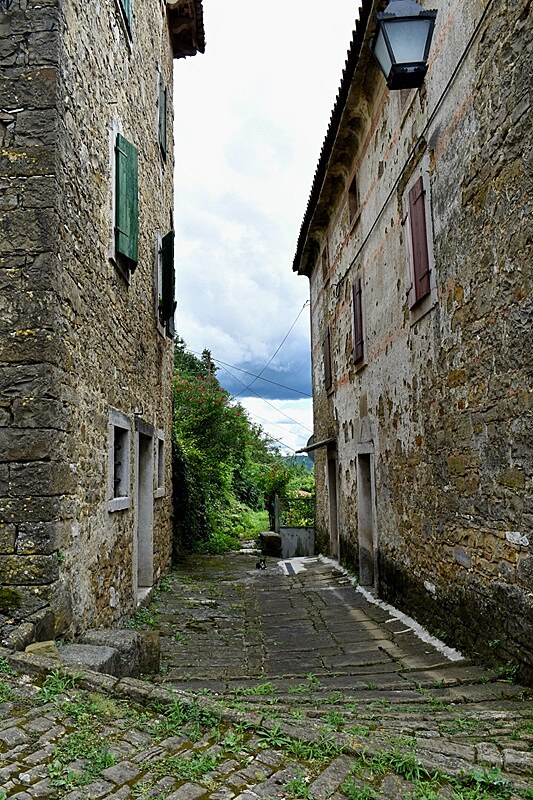 Vstal som zo schodov barokového chrámu Narodenia Presvätej Bohorodičky z konca 18. storočia, ktorý navrhol architekt Dongetti na objednávku rodiny Contarini. Stojí ešte pred hradbami stredovekého mestečka Završje. Staroveký názov tohto stredovekého mesta je zachovaný v talianskej podobe ako Piemonte. A v roku 1102 sa tu objavuje meno markíza Ulricha II. Potom to patrilo grófom z Pazinu. Monumentálna stavba kostola víta všetkých prichodiacich a lúči sa s odchádzajúcimi. Ktovie či tu ešte bude sedieť starký, keď pôjdeme späť. Kývol som mu rukou a on len tak nenápadne pokyvkal hlavou. Pomaly sme vchádzali po kamennej dlažbe Románskou uličkou, Romanička ulica, do takmer opusteného mesta na vysokom kopci.