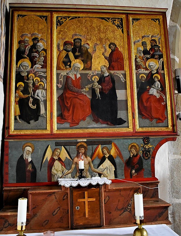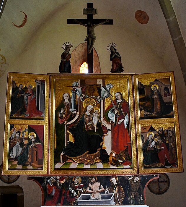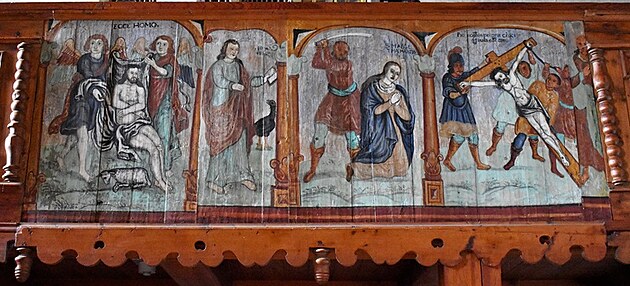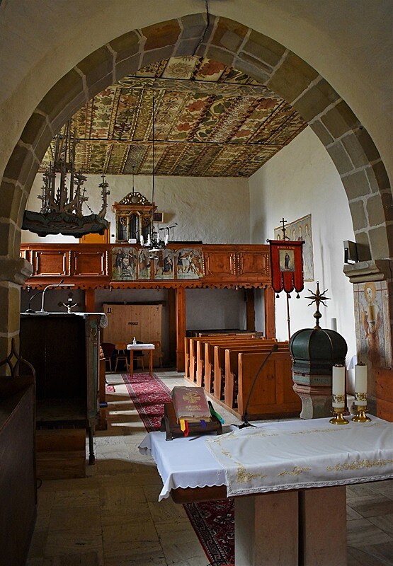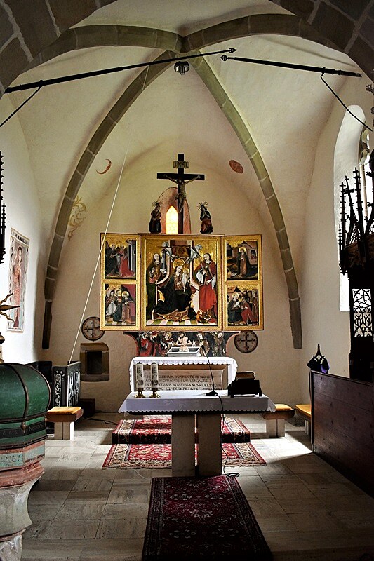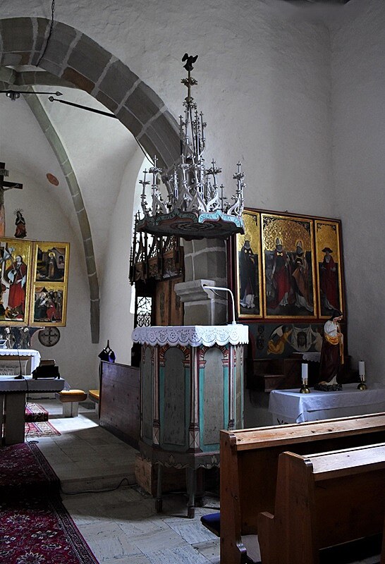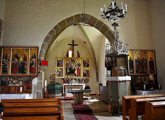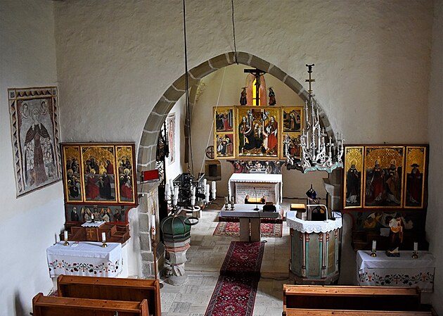 Tváre sv. Heleny, sv. Barbory a ďalších troch svätíc v jednom obraze i Panna Mária Ochrankyňa pri víťaznom oblúku, nad nami na stenách chrámu v tvarovej jednoduchosti a čistote byzantských ikon, nás uvádzajú aspoň na chvíľu k vnútornej meditácii. O všetkých tých vzopätých dlaniach v prosbe, o sklonených hlavách v pokore, o nádeji...Kniha v ruke apoštola fresky na víťaznom oblúku aj sv. Ján evanjelista na severnej stene a potom, už nedočkavo pristupujeme k pokladom neskorej gotiky. K pokladom, ktoré nás robia na jednej strane hodných puncu kultúrnosti, ale neustále pripomínajú, nie je národ kultúrny tým, že vlastní takéto hodnoty úžasných pamiatok, ale tým, že tie pamiatky pozná , ctí si ich a stará sa o ne.