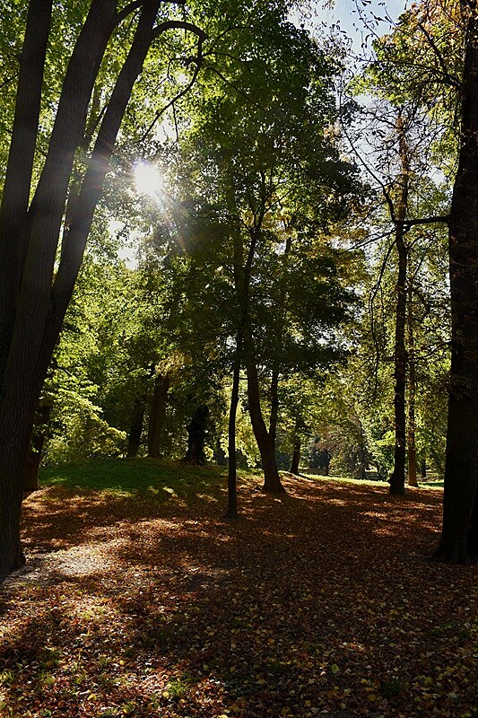 Každé miesto je, takpovediac, veľmi precízne prekalkulované s možnými čo najúčinnejšími efektmi výhľadov, okolitej atmosféry tvorenej stromovou výsadbou, ich mohutnosťou, alebo členitosťou, či farebnosťou. Teraz ešte znásobenou erupciou celej škály jesennej palety a chvejivými odrazmi obrazov kaštieľa na hladine rybníkov. Keď sme sa kochali v romantickom mame touto úchvatnou galériou v ktorej umelcom vytvorená krajina splývala v harmónii s prirodzenými prírodnými prvkami a danosťami, galériou v ktorej tvarová a koloristická skladba prechádza do hudobných tónov úchvatných symfónií oslavujúcich schopnosť človeka byť v symbióze so svojím prirodzeným prostredím aj keď ho pretvára na svoj obraz.