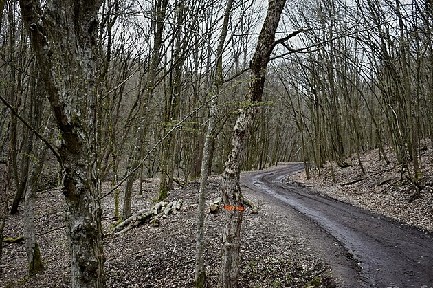 Tak sme sa na skorú jar vybrali po druhý raz na hrad Čabraď. Prvý raz, pred dvomi rokmi, sme sa dostali len kúsok do lesa a začalo nepríjemne pršať, bez perspektívy zlepšenia a tak sme sa vtedy dlhými nosmi otočili späť. Na konci obce Čabradský Vrbovok sme odparkovali na malom parkovisku a pod dramatickými mračnami sme sa vydali chodníkom v ústrety stredovekému romantičnu. Chodník najprv cez nejaký lesný potôčik, cez mláky a blato, opäť sme to akosi nevymákli, ale nedali sme sa odradiť.