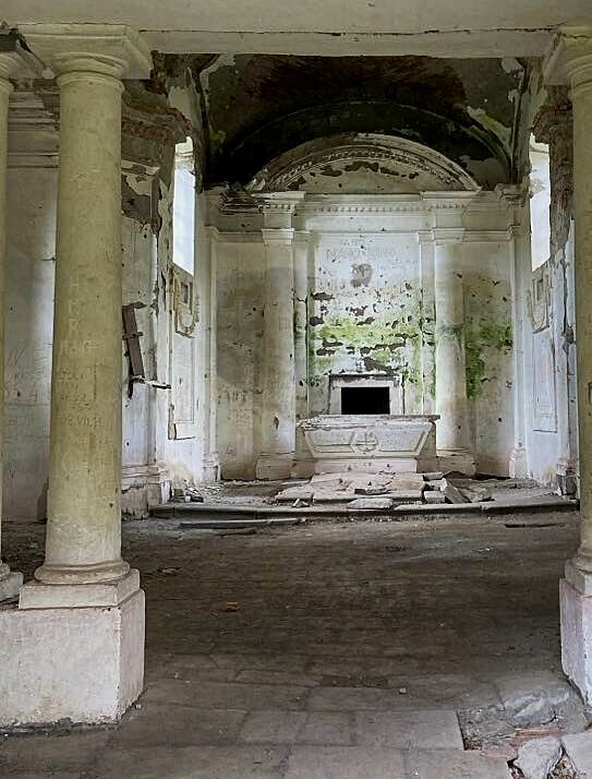 Pomaly sme schádzali opäť dole, ku kaplnke sv. Štefana. Je zvláštne vnímať túto, doposiaľ pompézne pôsobiacu, stavbu v prírodnom prostredí, ktoré je akýmsi protikladom tohto sakrálneho objektu. Alebo možno naopak, potvrdzuje pominuteľnosť všetkého, čo vnáša človek do večnosti prírody. Na lúke, ktorá je v súčasnosti prírodnou rezerváciou plazov, vystupuje zo zelene tráv a žihľavy veľkoleposť antických stĺpov nesúcich tympanón, pod ktorým zanechal František Jozef Koháry odkaz, „COMES FRANCISCVS KOHÁRI POSVIT DEI HONORI“ / Gróf František Koháry postavil ku cti Božej /. V roku 1813 dal kráľovský komorník a hlavný správca Hontianskej župy postaviť tento stánok Boží. Z bývalej osady Čabraď ostali zarastené rozvaliny. Len kaplnka pripomína pominuteľnosť. Schody do kaplnky sú pokryté machom a interiér je na každom mieste poznamenaný znameniami doby. Graffity v slovenčine i maďarčine, ako denník sa vyznáva z „lásky k blížnemu svojmu“. Hľadači pokladov tadiaľto zjavne prešli mnoho krát a každý zanechal po sebe stopu svojho vlastného mravného postoja. Stojac pri rozvalenom oltári ma nevdojak napadlo Krylove „ Z rozmlácenýho kostela v krabici s kusem mýdla přinesl jsem si anděla, polámali mu křídla, díval se na mě oddaně, já měl jsem trochu trému, tak vtiskl jsem mu do dlaně lahvičku od parfému“.............