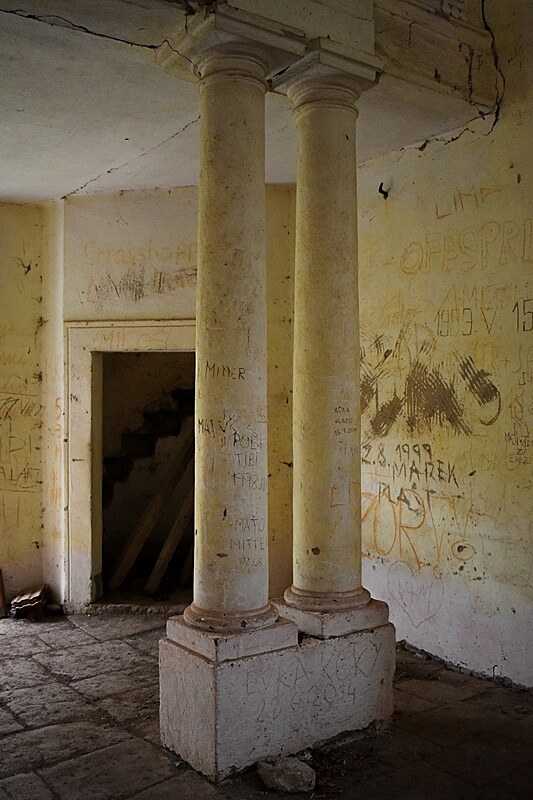 Akési mytologické sirény, nebezpečné bytosti, ktoré svojím neodolateľným spevom a krásou lákali námorníkov do vĺn, tu boli rekvalifikované na lákanie romantikychtivých turistov k hradným rumom. Prešli sme mostíkom ponad potok, cez čistinu na ktorej stoja dve budovy, ktoré vraj mali niekedy slúžiť turistom, ale osud z nich urobil len chátrajúce domy špatiace prírodu, a klasicistická kaplnka sv. Štefana, ktorú dal postaviť roku 1813, kráľovský komorník Ferenc József Koháry, hlavný správca Hontianskej župy. Tú sme si nechali až na cestu späť a vykročili sme ešte na poslednú etapu do kopca k hradu.