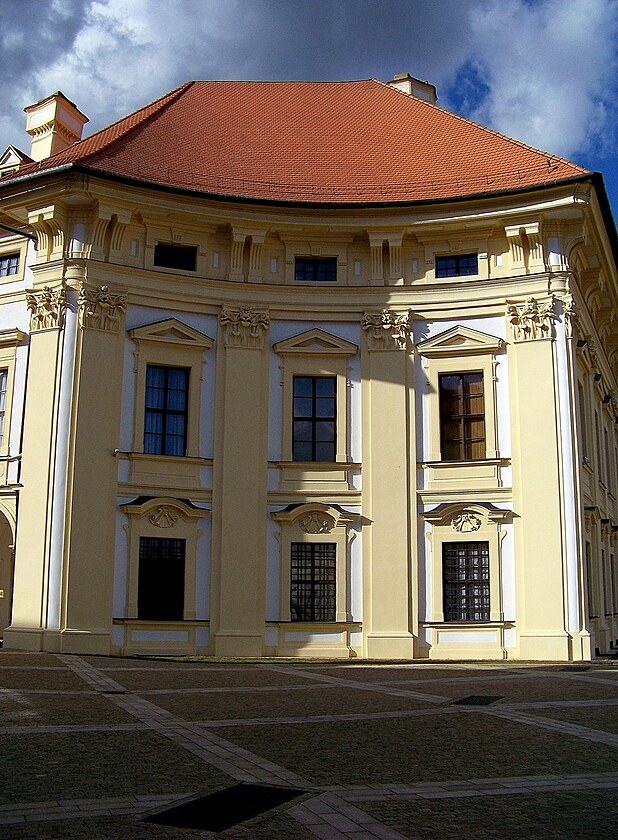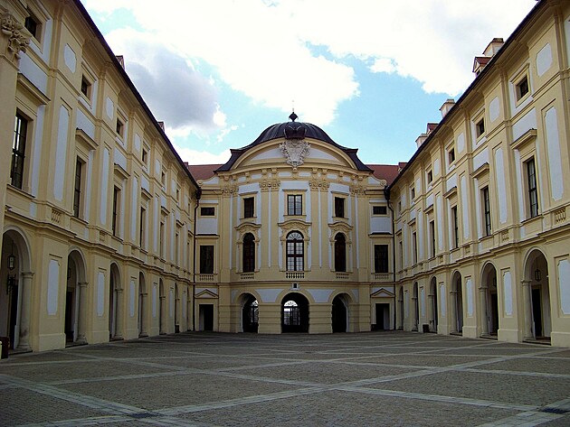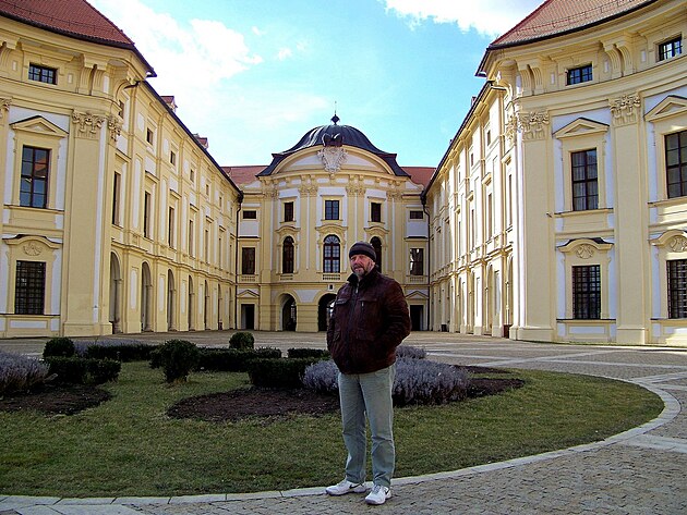 „Ale jo, tady hned vedle je cukrárna a kavárna s výborným kafe“ pozdvihol k nám zrak. Rozlúčili sme sa, vyšli na ulicu a nasmerovali k zámku Austerlitz, ktorý sa naozaj nedá vo svojej dominantnosti prehliadnúť. Monumentalita tohto barokového objektu narastá každým krokom k nemu.
