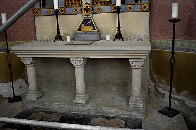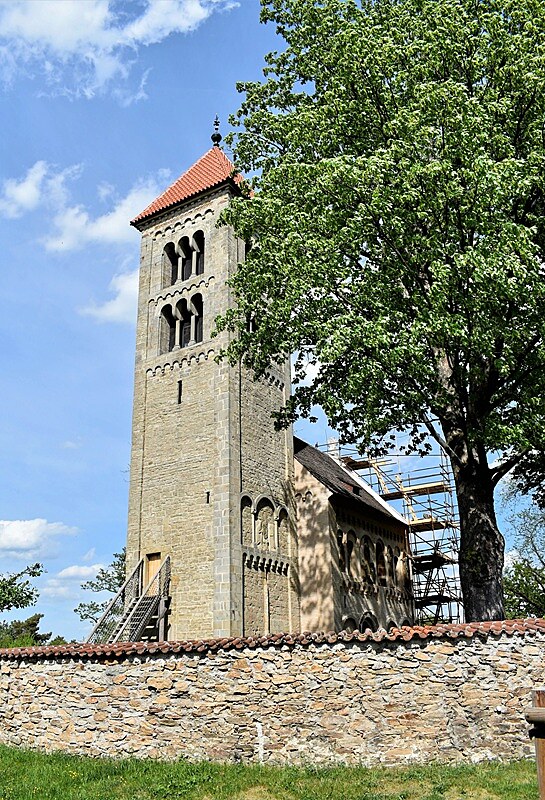 Držím medzi prstami zošúverené lístky brečtanu, ktorý ovíjal kamenný múr okolo kostola a cítim ich vôňu....Vlastne už ani neviem, či cestu k nádhernému románskemu kostolu sv. Jakuba sme plánovali vopred, ale určite sme na ceste z Kutnej Hory do Čáslavy odbočili na križovatke doľava. Teraz si spomínam, že v Kutnej Hore sme sa zastavili v Informačnej kancelárii a tam sme našli aj materiál o famóznom kostole v obci Církvice. V severnej časti tejto obce je časť Jakub a veža kostola už zďaleka láka. Kamenný múr, ktorý obieha okolo kostola dáva miestu ešte väčší punc romantična a historickej autenticity. Vlastne uvedomujem si, že v tom turistickom sprievodcovi bolo uvedené aj telefónne číslo pani, ktorá nás mala sprevádzať tými stáročiami v kameni.