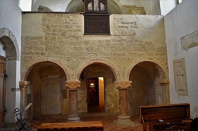 Čakala nás už pri kovovej bráne vstupu do areálu. Vedeli sme, že je to ona, lebo keď sme sa na ňu pozreli, vyzerala akoby vyšla z vlastného domu. Akoby tam patrila. Ľudia, ktorí majú radi to, o čom hovoria, trošku sa tým aj chvália. Je to také pekné chválenie. Je v ňom trošku lokálpatriotizmu, trošku lásky s prímesou hrdosti. Vošli sme dovnútra kostola oblúkovým portálom, akoby sme sa báli, že nám zatvoria. Pani sprievodkyňa nám rozprávala históriu stáročí, históriu postavenia kostola, ktoré siaha do obdobia rokov 1148 až 1156 ako obdĺžnikovej jednoloďovej stavby s pánskou emporou.