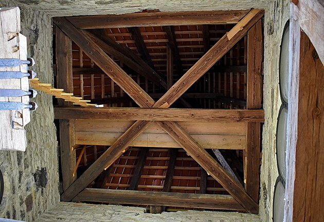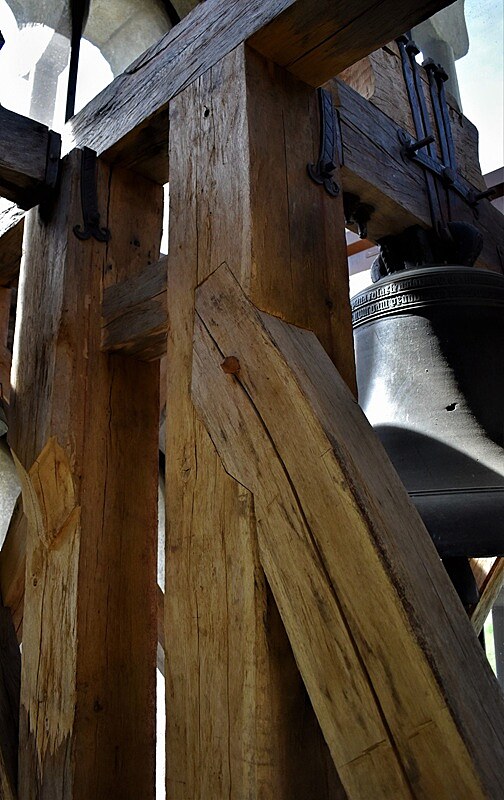 ...Keď sme už vychádzali z kostola, bola nám daná otázka, či sa nechceme pozrieť do kostolnej veže, kde bola nedávno vymenená drevená konštrukcia kostolných zvonov. Tá otázka bola taká naliehavá, že som hneď pochopil akýsi skrytý význam, ktorý nám pani sprievodkyňa chce vyrozprávať. Už pri stúpaní po drevených schodoch vonkajšieho schodiska k zvýšenému vstupu do veže sme sa dozvedeli, že všetky práce realizoval tradičnými tesárskymi metódami „tesařský mistr Petr Růžička“.