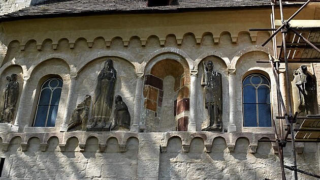 Bohato členená južná fasáda lizénami a oblúčkovými vlysmi a reliéfna figurálna výzdoba slepých arkád je znakom nie len významu kostola tej doby, ale aj vysokej umelecko-kultúrnej úrovne tvorcov. Reliéfy sú pravdepodobne Talianskej a Saskej proveniencie vytvorené mimo územia Česka a prevezené na miesto osadenia, kostola sv. Jakuba v Církviciach. . V 16. a 17. storočí slúžilo okolie kostola ako pohrebisko a náhrobné kamene sú teraz osadené v stenách interiéru kostola.
