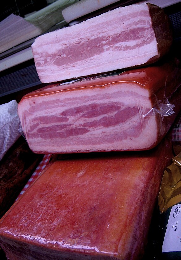 Kromě chleba a vína taky půlkilovku másla, kousek sádlem řádně prorostlé syrové slaniny (pancetty) a tučné čerstvé mléko. Zeleninu nebere. Cokoliv zeleného si místo salátu naškube pod oknem, teď na jaře i mladé pampelišky.