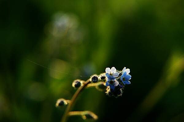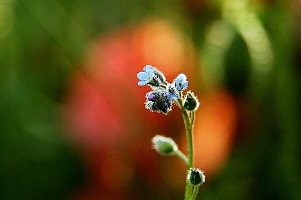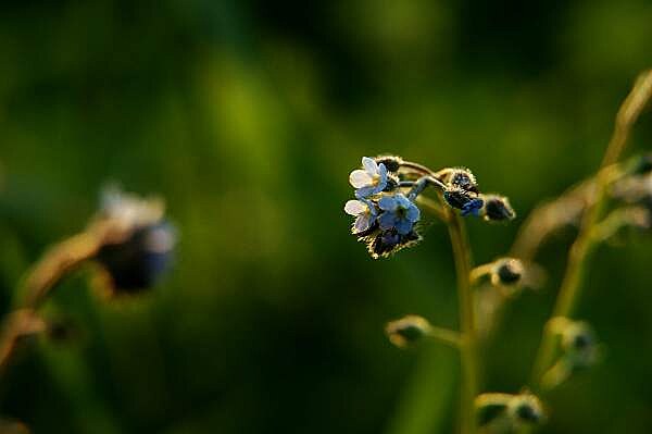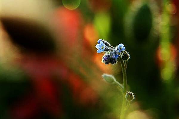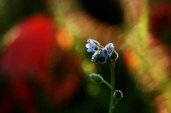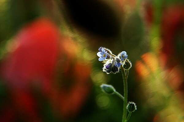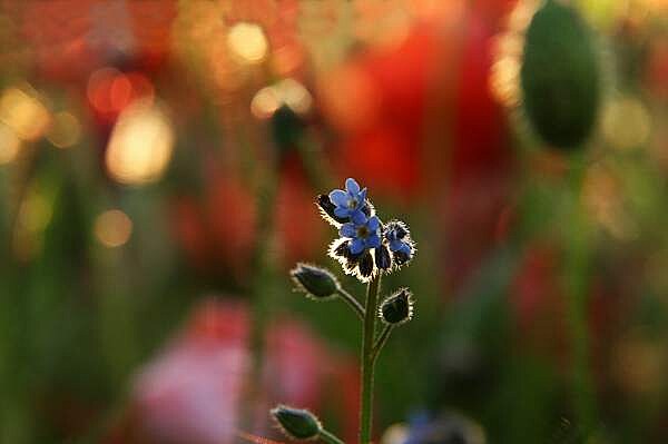 Snad své malosti? Kleče, pasu se na jejich půvabu. Hustým porostem polního býlí pronikají paprsky podvečerního slunce, střídavě zacláněny povlávajícími lístky vlčích máků proměnlivě osvětlují drobné květy pomněnek. Hrou barev, světel a stínů vznikají nevídaně dramatické obrazy. Němě hledě na toto úchvatné divadlo si svou nicotnost uvědomím velmi snadno.