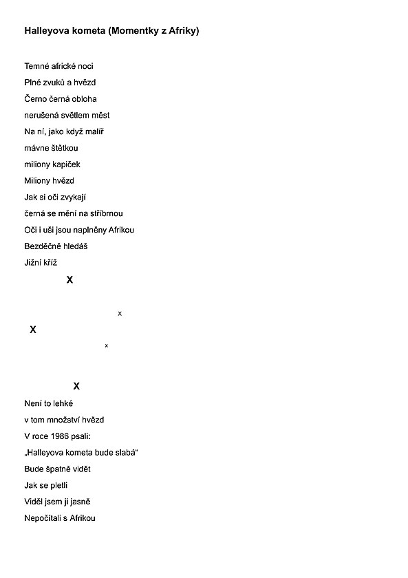 Obrázky, které se mi objeví, když pevně zavřu oči a myslím na Afriku. Jsou to momentky, které jsem použil ve více básních. Patří do poslednin.