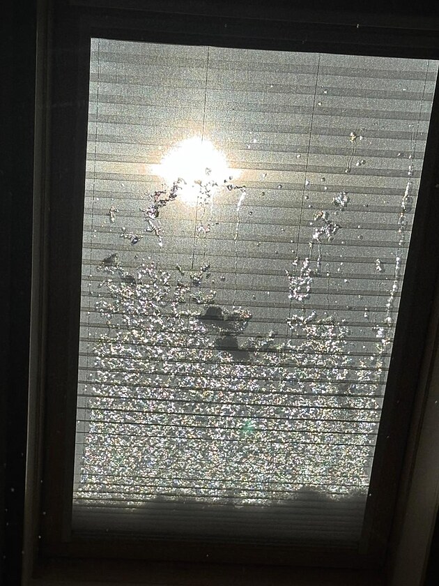 Na okně září kapičky vody