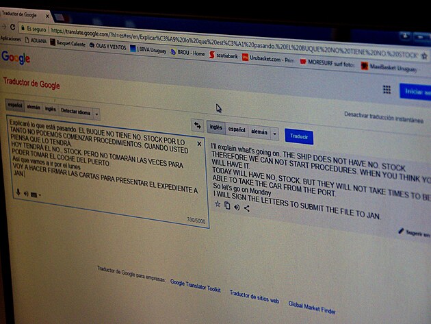 Vojta mi ukáže na mapě, kde sídlí a já běžím k němu do kanceláře. Trochu si pobloudím a vzbudím celkem dost pozornosti u kolem j(e)doucích, včetně jednoho prodavače pečiva, který mi nabízí jídlo zdarma. Dobíhám ke kanclu a tam zrada. Eduardo je zrovna v přístavu a jeho kolega mluví jen šanělsky. Prosím o papír a tužku, že Edovi necham vzkaz, ale nakonec vymyslíme dobrý způsob komunikace – přes google translator.