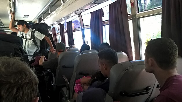 V poměrně velké příletové hale si ještě zajdeme vybrat, či vyměnit peníze a jdeme lovit dopravu do centra. Od této chvíli se začíná realizovat Iva, neb jediná z nás všech ovládá Španělštinu.Na zastávce stojí chlapík hrající na kytaru, čímž nám zpříjemňuje čekání na autobus. Ten ovšem není příliš uzpůsoben na přepravu lidí se zavazadly, ale zvládneme se nějak poskládat a vše (včetně sebe) důkladně přidržet, aby to nevypadlo otevřenými zadními dveřmi.