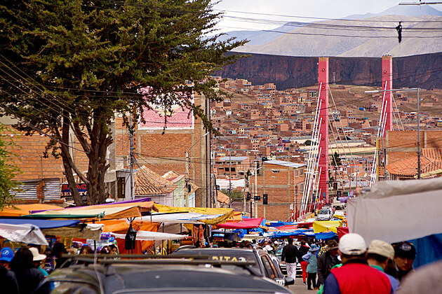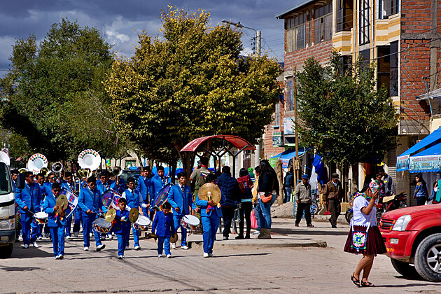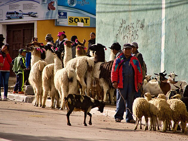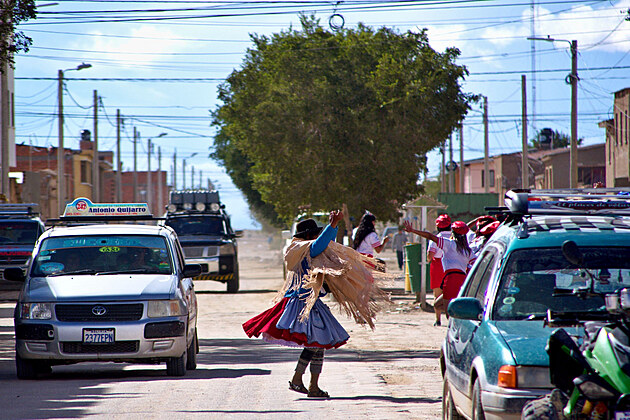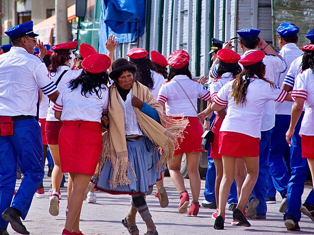 Nějak se jim protáhl oběd, takže jsou stále někde v restauraci a teprve čekají na účet. No co se dá dělat, čekáme na ně a v mezi čase děláme výpady do obchodů. Ivča už se zase pokouší jít někam sama, tu uhlídat je nadlidský výkon... Nakonec odchází ve společnosti své Kamarádky a vrací se skoro ve stejnou chvíli, jako zbytek posádky a rovnou nám předává varování od jedné místní paní. Prý není moc bezpečné pro turisty zdržovat se vě městě během slavností, kvůli hrozbě okradení a tak, takže se jen z dálky podíváme na průvod tančících „pilotů a letušek“ a jedné velmi akční babičky, než nasedneme do Amálky ajedeme směrem na Potosí, které je známé hlavně kvůli stříbrnou rudou protkané hoře Cerro Rico tyčící se nad ním.