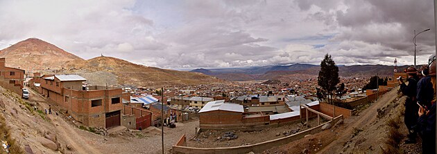 Po továrně už je na řadě samotný důl. Cestou se zastavíme na vyhlídce „Photosí“, cvakeme nějaké to panorama s dolem hore a městem dole a můžeme pokračovat na rozrytý kopec. Evakuujeme se z autobusu, a protože si nechci brát foťák s sebou, nechávám si ho u řidiče a jen doufám, že se s ním ještě někdy shledám.