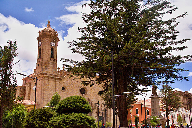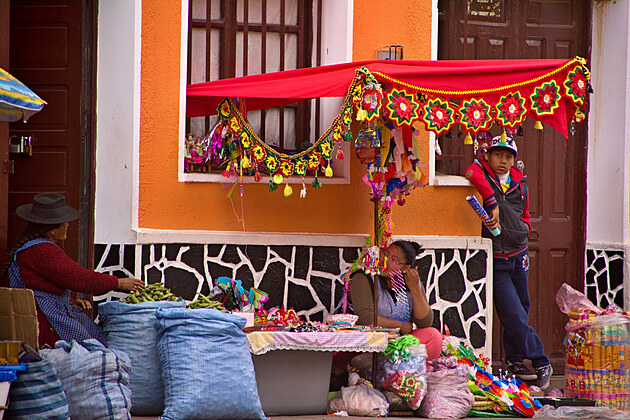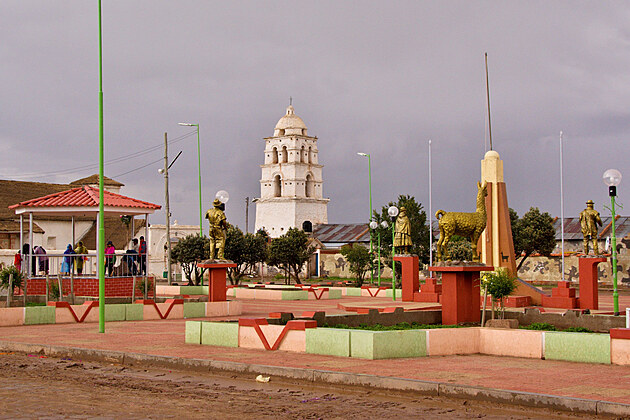 Dojíždíme do malého městečka, kde má dle Lonely Planet být „Sixtýnská kaple Jižní Ameriky“. Ta tam sice je, ale je zavřená. To samozřejmě zjistíme, až když se vymotáme v nepřehledných uličkách, vyhneme se rozloženému trhu na hlavní třídě, zaparkujeme v zapadlé uličce a v lijáku dojdeme na náměstí. Během probíhající Fiesty se snažíme najít alespoň jeden otevřený obchod, kde by měli alespoň pečivo, ale je to marné.