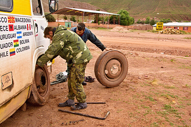 Dojíždíme k Potosí, což je město doslova v kopcích (není se čemu divit, když je to druhé nejvýše položené město Bolívie). Cesty nahoru a dolů a semafory uprostřed příkrých výjezdů Amálce nedělají dobře, takže opět vaříme. Při chlazení si František najde místo ve strouze u silnice a začne si krémovat boty. To neunikne pozornosti pána v okně nad ním, který vyšle svého malého synka s kartáčem. Je to milé, jak se místní starají o cizince. Včetně toho, že Ivča jde k někomu domů, zazvoní a oznámí jim, že se tam s Luckou jdou vyčurat. Alespoň tak to působí pro vnějšího pozorovatele, když vidí jak Ivča s naprostou lehkostí chvíli s někým mluví a on pak udělá přesně to, co chce a většinou i něco navíc.