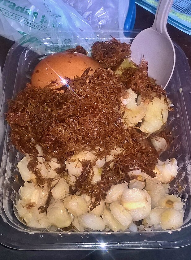 Nakonec nás čeká velké překvapení. Za 13B dostáváme vaječnou omeletu se zeleninou jako předkrm, polévku, maso s rýží a želatinovo ovocný dezert. A k tomu jsme ještě měli litrovou lahev výborné ovocné šťávy. Odcházíme spokojení a přecpaní. Zastavujeme se na tržišti, kde v jediném otevřeném obchůdku široko daleko Jack koupí balík klobás, ať máme něco do těstovin, anebo ke kaši.