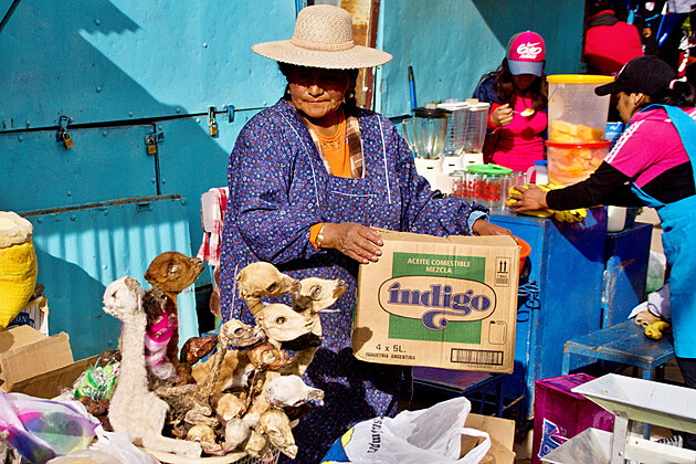 Prvním cílem dne je hornický trh. Jako první nás Wilson vede ke stánkům, kde koupíte věci, které vám jinde na světě jen tak neprodají – dynamit, rozbušky, ledek. A taky koku. Bere si rovnou jeden připravený balíček a stranou nám vysvětluje, jak funguje těžba s pomocí dynamitu, vypráví nám, že v devíti letech s dynamitem prvně pracoval, a že horníci mají koku vlastně místo hodinek – 2 hodiny trvá než si „nakřečkují“ plnou tvář lístků bez šťopky a ta pak 4 hodiny účinkuje, znovu 2 hodiny doplňují zásobu a další 4 hodiny těžce pracují, zatímco koka působí. Další zajímavostí je 96% alkohol potable, který pijí hlavně v pátek v noci.