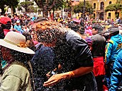 Já po chvíli pozorování průvodu už ani nevím, zda jsem schytala zásah od vlastních nebo od cizích, jen plivu pěnu a chráním foťák.