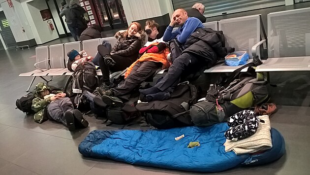 Odkládáme se na letštní sedačky a pod ně a než stačíme usnout, je tu medical problem. Rozespalý zdravotík pečuje o paní, co má asi bolesti břicha? Těžko říct. Nakonec dojede i záchranka, napíchnou jí kanylu a něčím jí ukázkově zplacatí, než si jí odvezou pryč za stálého prodýchávání ambuvakem. Konečně chceme spát, ale naběhne na nás ochranka, že musíme být na lavičkách. Kroutíme se tedy po nábytku a konečně usínám. Dost mě neuspokojí, že ten pocitově dlouhý a osvěžující spánek trval deset minut.