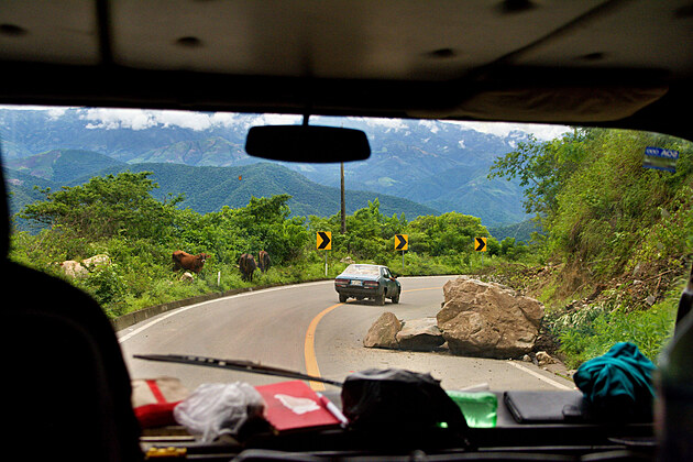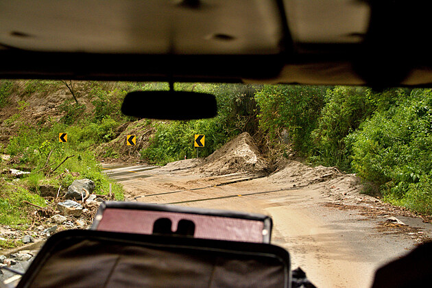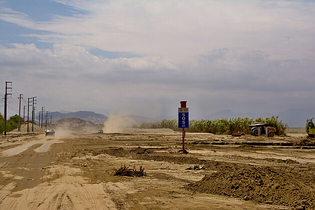 Chvíli po tom, co dojíme, odstraní policie zátaras a jedeme. Přes objížďku se vrátíme zpět na Panamericanu, kde můžeme pozorovat likvidační práce po mimořádné události. S těžkou technikou odhrabují bahno a snaží se udržovat průjezdný vždycky alespoň jeden jízdní pruh. Žán tak s Amálkou občas kličkuje z jednoho pruhu do druhého, občas není ani jisté, jestli ty vyjeté koleje v bahně jsou ještě nad silnicí a nebo už v poli. Dojíždíme k dalšímu mostu, kterému znatelný kus chybí, ale naštěstí je stále průjezdný. Nicméně zdržovat se na něm delší dobu by nemuselo být bezpečné.