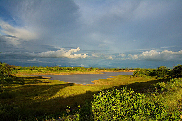 Jedeme dál. Projíždíme několik brodů, které místní děti využívají ke koupání a dospělí k mytí aut a traktoru. Spolu se západem slunce z jedné strany a bouřkou z druhé strany přijíždíme k ohromnému jezeru. S Vojtou jdeme na průzkum, jak to tam vypadá a většina lidí se pak jde vykoupat. Mně studená a ne moc čistá voda ani v nejmenším neláká, tak si jen cvaknu pár fotek západu slunce před námi a přicházející bouřky za námi a vracím se s Jackem a Luckou k Amálce, kde střídáme v hlídání Žána s Vendy, aby se taky mohli jít vykoupat.