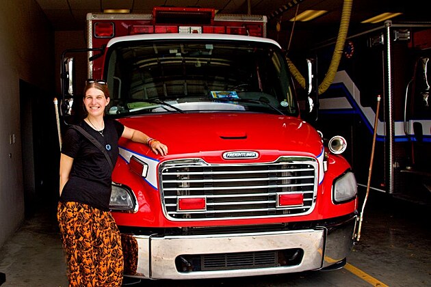 Následně dojdeme na exkurzi na hasičskou stanici. V USA jsou výjezdová stanoviště záchranky právě u hasičů. Místní poručík mě nechá úplně bez problémů prolézt si velké hasičské auto a i sanitku. Uznávám, že jsem jako malá, ale je v tom profesní zvědavost. Rozhodně to stojí za to. Alespoň mám srovnání v kvalitě a kvantitě vybavení oproti našim sanitkám a trochu se pobavíme i o kompetencích. Za chvíli mají záchranáři výjezd, takže si ještě zamáváme, oni odjíždí a my se jdeme se Steavem ještě projít k obřímu parku, než se rozloučíme. On má sraz s manželkou a já se vracím k hostelu.