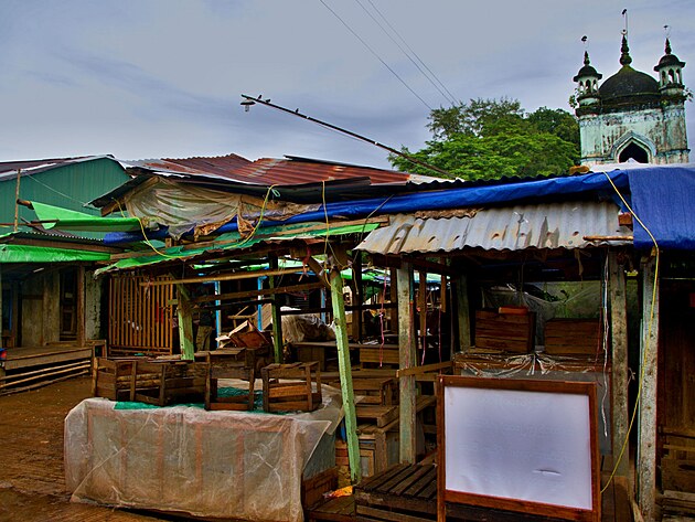 Místní strážníci jsou sice trochu překvapeni, když k nim dojedu, ale nakonec dohledají se postupně dobereme toho, co hledám a jeden z nich mě doprovodí do zlatnictví. Tady je to docela zvláštní. Prodávající paní sedí za mříží, ale mluví fakt dobře anglicky, takže krom toho, že mi vymění peníze, tak mi ještě poradí, kam si zajít na nejlepší večeři. Prý mám zkusit trh a pokud už by tam bylo zavřeno, tak v jedné ulici: „Počkej, jdu ti ukázat.“ Vyleze ze své kukaně a jde se mnou na ulici a ukazuje kudy kam. Je to trochu složitější, ale zas Kawkareik je fakt malinké městečko, takže to musím najít, i kdybych nechtěla. Pak ještě koukne na hodinky a vrtí hlavou, že trh už nestíhám. No, já to chci aspoň zkusit, ale opravdu mě přivítají jen prázdné zavřené stánky.