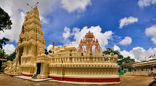 Dolů se vracím stejnou cestou, kterou jsem přišla. V hromadě škrpálů si vyberu ty své, seběhnu zbytek schodů, koupím si vodu u pouličního prodavače a zase sedám na kolo. Další zastávku dělám u světlého hinduistického chrámu. Všechny hinduchrámy, které jsem do té doby viděla hýřily všemožnými barvami, takže mě tenhle o to víc překvapí a nadchne. (O rok později už se začal trochu vybarvovat…) Hned vedle něj je dívčí škola, jedna z dívek mi oknem zamává, ale pak jí okřikne učitelka a mě začne vyhánět, tak radši jedu.