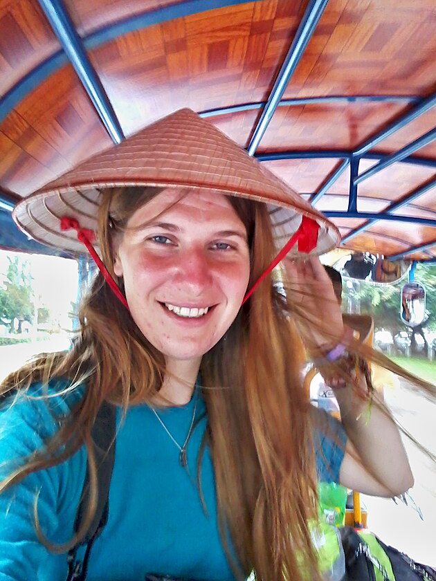 Vstávám poměrně brzo ráno, abych stihla dojet na letiště. V hotelu jsem si domluvila odvoz tuktukem. Do toho trochu prší bokem i teče střechou, tak si nasadím svůj vietnamský klobouček a jsem celkem v suchu.