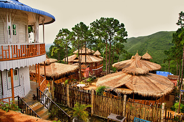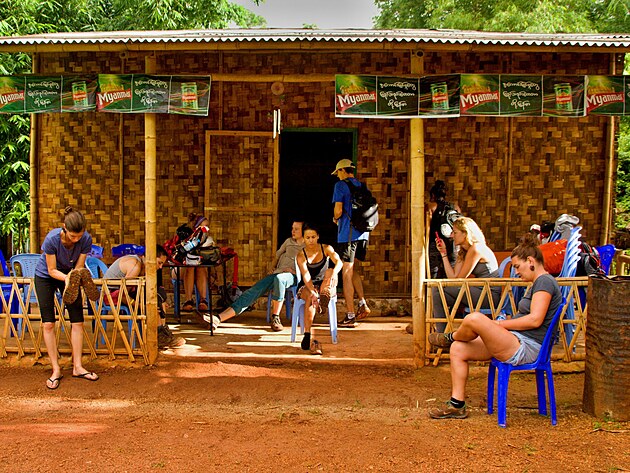 Přicházíme k hotelovému komplexu s restarací, před kterou jsou stánky s různými místními tradičními výrobky. Lampiony, longy, košile, klobouky a naproti pokladna, kde se platí vstupné do národního parku. Pokračovat můžeme až ve chvíli, kdy všichni zaplatí.