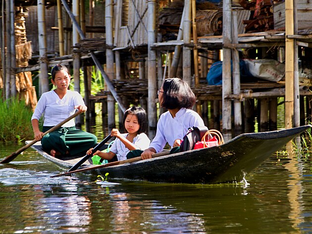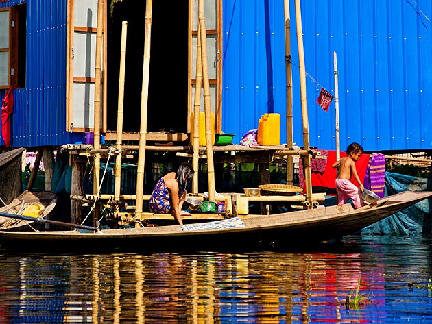 Cestou dál vidíme běžný život lidí z domů nad vodou. Děti jedou na lodičce do obchodu, kousek dál paní pere ze schodů pod domem. V té stejné vodě, do které ovšem ústí všechny kadibudky v okolí.