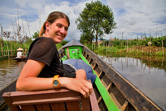 Sedáme si na dřevěné židličky v lodi, pod plachtou u nohou mám naskládané batohy pro holky, které si zamluvili nocleh přímo v hotelu na jezeře. Projíždíme úzkými kanály, které vedou zarostlou zelenou bažinou, postupně se rozšiřují a začínají je obklopovat plovoucí zahrady.