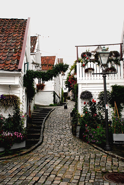 Vyplhám se nahoru do hleditě a z něj přejdu do uliček Starého města. To vybudovali rybáři a konzerváři a vyznačuje se spoustou malých bílých domečků, větinou s květinovou zahradou, nebo aspoň květinami v oknech, na zápraí... Jednodue řečeno, kam se dá postavit, pověsit nebo poloit kytka, slaměné srdce případně lehce kýčovitá soka (a nebo rovnou vecko), tam si buďte jistý, e tam taky bude. Dalí věc, kterou tu potkávam na kadym kroku je chytrej telefon. A od něj vede ruka, která je spojená s tělem dalího turisty, kterej ho pouívá na focení, take to chvílema vypadá tak, e stojíme ve frontě na fotku třeba i se čtyřma lidma. Grrrrrr. Vzpomínam si na Marvinovo výrok: Mě rady vaděj ty lidi. a musim se s nim plně ztotonit.