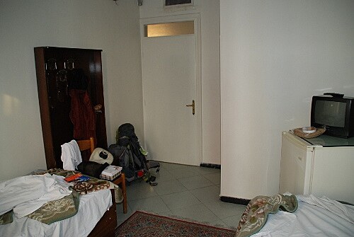 Nejprve tedy přestěhujeme krosny na single room, kterého mi skoro přijde pro Tomáše škoda, takový roztomilý malý pokojík, pro ajťáka, kterému by stačila sklepní kobka s ventilátorem. Po této fyzicky náročné činnosti („Že tys mi tam přibalil pár šutrů na památku?“ „Vždyť je přece sbíráš, ne?“) je opravdu třeba se najíst. Tentokrát zavítáme do restaurace naproti hotelu. Dáme si pro změnu Khoress keime, ale protože si nemůžeme vzpomenout na název, domluvíme se, že nás pustí do kuchyně a my si vybereme. Pustí nás tedy k hrncům, Tomáš chvíli všechno zkoumá a očuchává, až ukáže na vybrané jídlo, taky ho tu nemají špatné ale hranolky na vrchu jsou velké a oslizlé.V té druhé restauraci je umí lepší, ale taky je to jiná kategorie. O něco málo. Ale tady mají zase lepší chleba. Nejdřív do mě to jídlo padá jak Němci do krytu, ale čím víc se blíží odjezd, tím víc mám pocit, že začne zcela nekontrolovatelně měnit směr, takže večeře končí, vracíme se do hotelu.