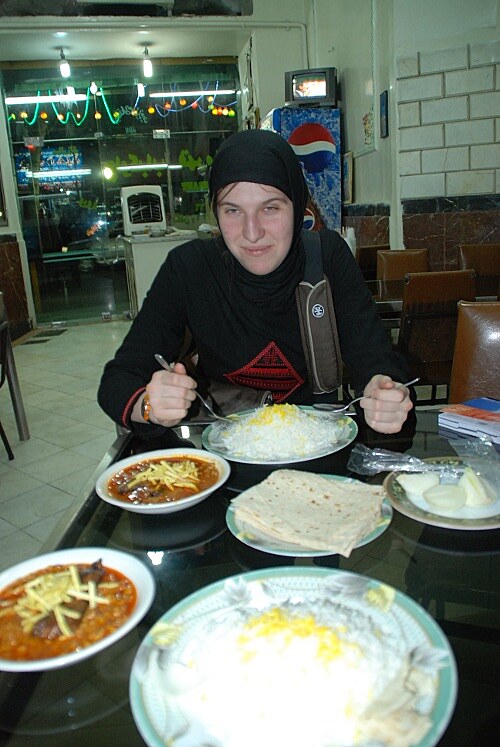 Nicméně se začíná ozývat příroda, takže než po krásách severního Teheránu se rozhlížím po spásném nápisu toilet. Nikde nic, možná v tom obchodním centru by něco být mohlo... Tomáš se zeptá policisty hlídajícího v parčíku. Občas mi připadá, že mě opravdu bere jako dceru. Výchovným působením počínaje, někdy až přehnanou starostlivostí konče. I když tentokrát jsem mu vděčná. Představa, že oslovuji místního příslušníka s žádostí o navigaci na záchod se mi nezamlouvá ani v nejmenším, to bych se snad radši na místě počurala. Máme jít rovně a dívat se vlevo, nemůžeme minout. Tím si sice v našem případě nejsem úplně jistá, ale radši nám pro tento okamžik věřím. A taky věřím tomu, že to nebude až za 10 km. Pomalu se začíná stmívat, takže se utěšuji tím, že pokud vlevo nebude požadovaná budova, bude tam dozajisté příhodné křoví, kterého bývají parky plné.