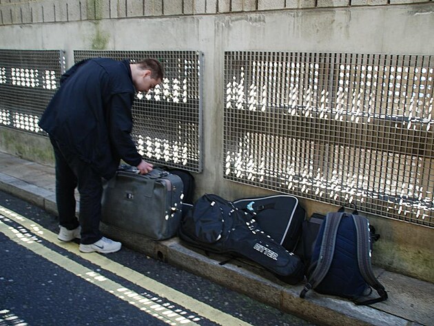 Nesmát se, hlavně se nesmát. Soucitně pokývu hlavou a čekám, až nás nechají vyjet z téhle obří kovové rakve. Šňůra dopravních prostředků se pomalu dává do pohybu, až je i na nás řada vjet na pevnou zem, zařadit se doleva a hurá směr Londýn. Poslední fáze cesty uteče nejrychleji, protože se konečně zapovídáme. Takže zjistím, že jedu s budoucím umělcem (to vysvětluje tu haldu kytar), který se tu chystá studovat. Tož to hodně štěstí, chlapče.