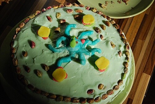 Ráno vstáváme až (sebe)vražedně brzo, dáme si lehkou snídani, rozdělíme úkoly na dopoledne (dodělat počítače, dovařit) a s Hančí odjíždíme dokoupit něco zásob a vyzvednout Marvina. Doma se pánové ihned zaparkují k WOWku a my ke sporáku. Po chvíli se situace trochu změní a oba technici začnou usilovně pracovat stejně jako my dvě. Výsledkem jsou dva plně funkční počítače a jeden pistáciový dort s vymodelovaným Dogtopusem a sendviči.
