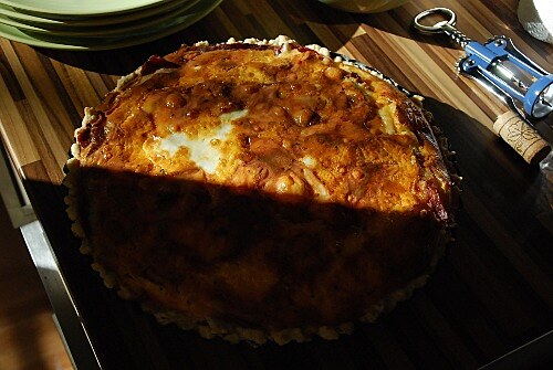 Do přípravy oběda se pak plně angažuje Marvin, protože si jej taky vymyslel. Quiche Lorraine zní sice děsně honosně a skoro až snobsky, ale ve skutečnosti je to hrozně jednoduchej (aspoň, co jsem tak koukala, jak se to dělá) slanej koláč. A hlavně taky moc dobrej. K tomu skleničku bílého a perfektní oběd těsně před začátkem hry je na světě.