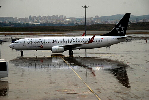 Většinu času na letišti trávím v sedě na zemi u sloupu naproti prosklené stěně s výhledem na letadla a liják venku. Sem tam si jdu protáhnout nohy procházkou po letištní hale. Díky tomu, že SAW je o dost menší než Atatürk, tak ho prolezu téměř od sklepa po půdu a i tak mi to nezabere zrovna moc času, takže stihnu přečíst celou další knížku a dopsat zápisky v deníku.