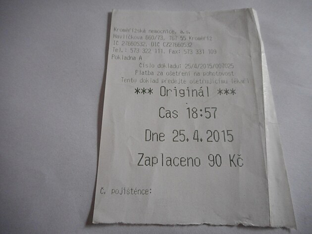 Šel jsem si domů lehnout. Celý den jsem proležel, ale pořád můj problém neustupoval. Další noc jsem opět nespal. V sobotu ráno se také nic neměnilo. Okolo devatenácté hodiny mě bratr odvezl do nemocnice v Kroměříži. Tam jsem si musel napřed zakoupit v automatu lístek, až pak je někdo ochoten se dál o člověka zajímat. Panu doktorovi jsem popsal své potíže a předložil i lístek od včerejšího vyšetření. Odebrali mi krev a poslali mě na rentgen a ultrazvuk. Po všech vyšetřeních jsem čekal nějakou dobu na výsledky. Pak si mě opět zavolal pan doktor. Předpokládal jsem, že mi dají nějaké léky a půjdu domů, ale to byl velký omyl. Bylo mi řečeno, že budu hospitalizován, že podle laboratoře mám v těle nějaký zánět a na ultrazvuku mi také něco našli. Prý to bude ještě oříšek, aby zjistili co mi vlastně je. Lístek od poplatku mi vrátil s tím, že si jej můžu použít kdykoliv znova! Tiše jsem ze všeho žasl. Měl jsem z toho všeho šok, protože aby mi v břiše něco narostlo přes noc, tak tomu jsem nemohl uvěřit. Také mě překvapilo řešení mé neoprávněně vymáhané platby, kterou se mnou tak chytře vyřídili!